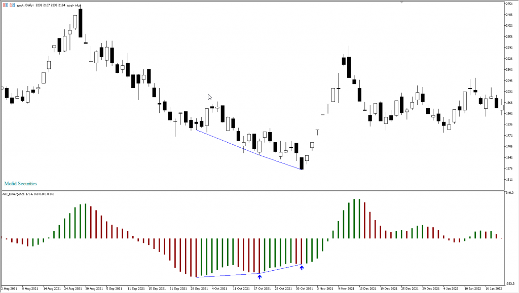 سیگنال خرید با اندیکاتور Awesome Oscillator Divergence