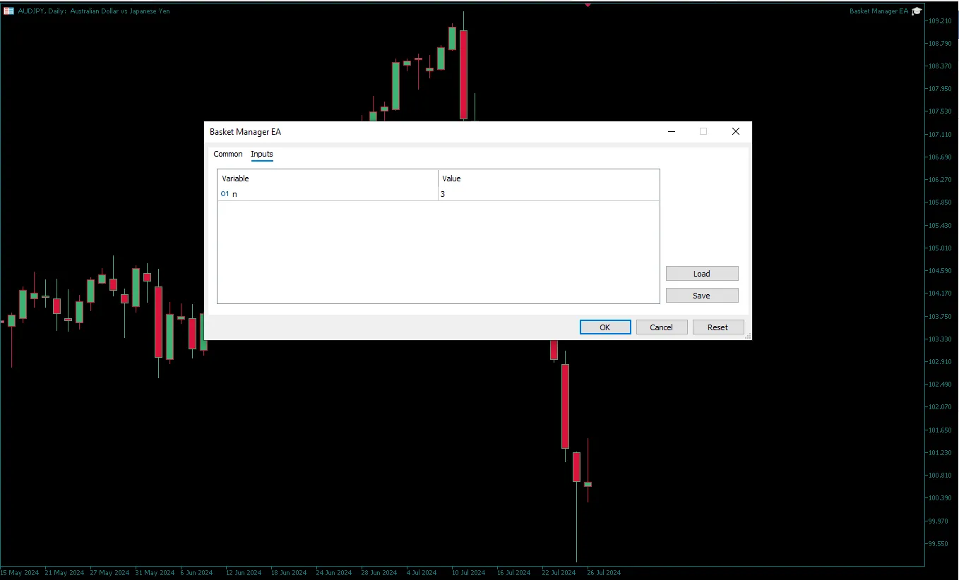 Basket_TakeProfit_Percent(حد سود بر اساس درصد) یاBasket_StopLoss_Money(حد ضرر بر اساس مقدار پول) را تنظیم کنید. - فیلتر کردن معاملات (اختیاری): اگر میخواهید فقط معاملات خاصی مدیریت شوند، magic number یا comment مربوطه را در پارامترها وارد کنید.