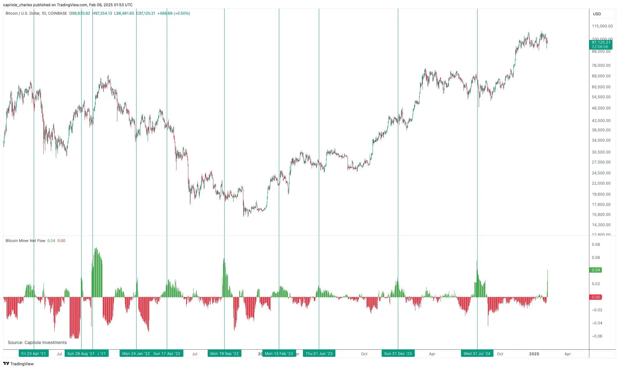 استخراجکنندگان طبق دادههای Capriole Investments شروع به تنظیم داراییهای بیتکوین خود کردهاند. در تاریخ 10 فوریه، چارلز ادواردز، بنیانگذار Capriole، دادههای جریان خالص استخراجکنندگان را در X به اشتراک گذاشت. این دادهها نشان داد که استخراجکنندگان در حال افزایش قرار گرفتن در معرض بیتکوین خود هستند.