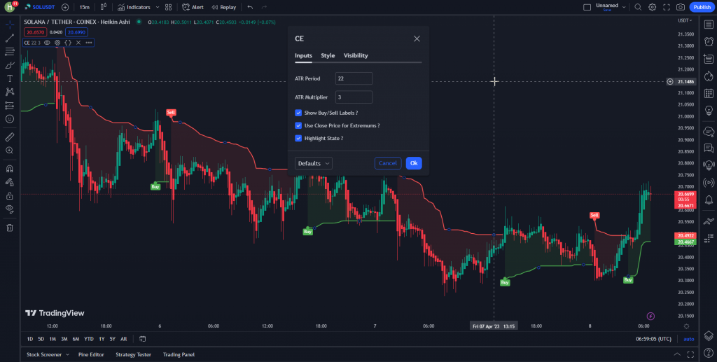 ATR Period را در محدوده 15 و ATR Multiplier را در محدوده 3 قرار دهید