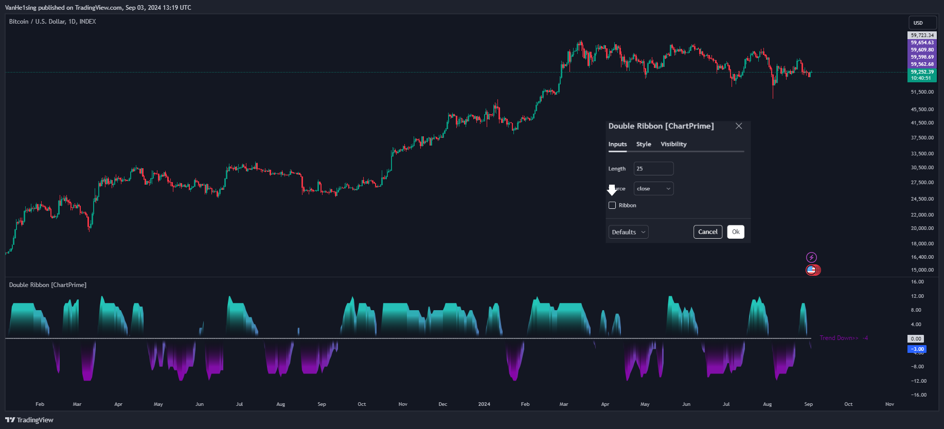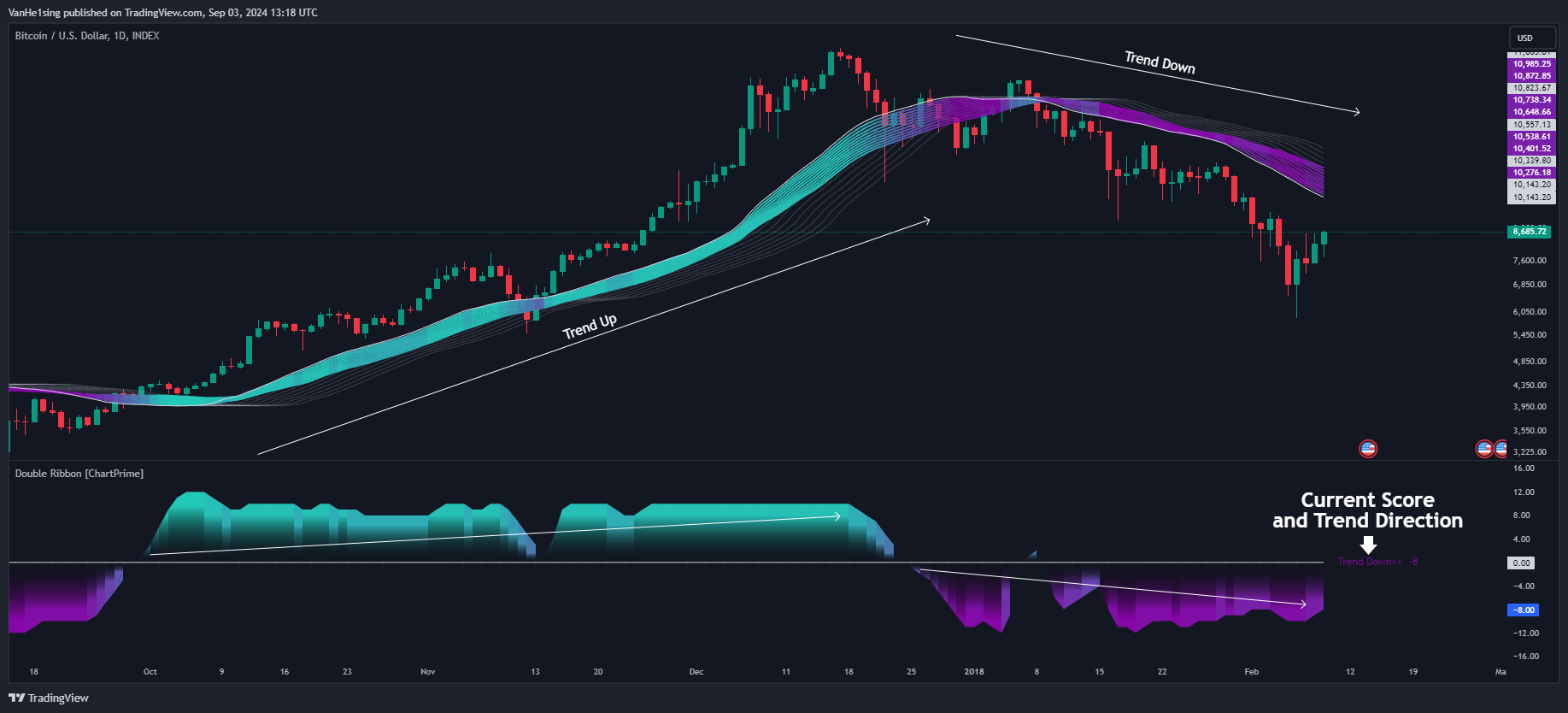 نحوه استفاده از اندیکاتور Double Ribbon در تریدینگ ویو