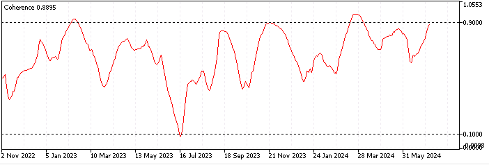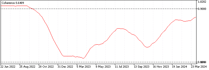 برای نشان دادن انسجام، ما یک نشانگر به نام Coherence.mq5 تولید خواهیم کرد که انسجام قیمتهای پایانی نمادهای مختلف را در یک پنجره زمانی اندازهگیری میکند. کاربران میتوانند با اضافه کردن نامهای نماد بهعنوان یک لیست جداشده با کاما، انسجام بین نمادهای مختلف را اندازهگیری کنند. این نشانگر از رویکرد متفاوتی برای محاسبه همبستگی بین چندین متغیر استفاده میکند و در اینجا از ضریب همبستگی غیرپارامتری اسپیرمن استفاده میشود.