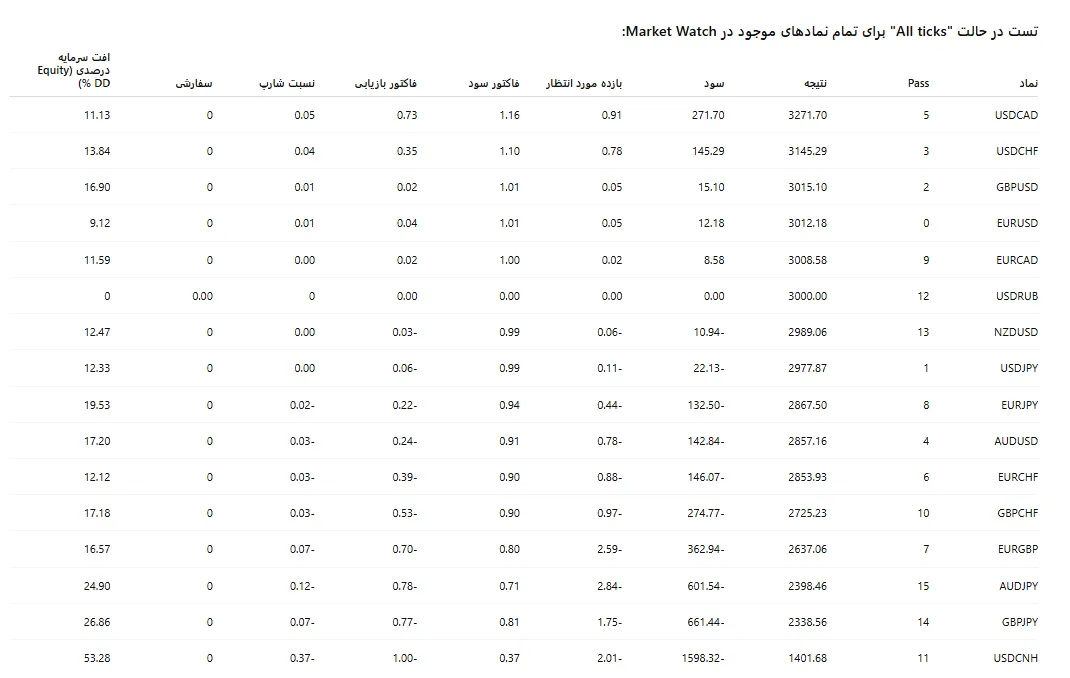 💡 نتیجه کلی: اکسپرت AOCCI در جفت‌ارزهایی مانند USDCAD، USDCHF و EURUSD عملکرد مثبت‌تری داشته و نشان داده که برای جفت‌ارزهای با نوسانات کم تا متوسط مناسب‌تر است.