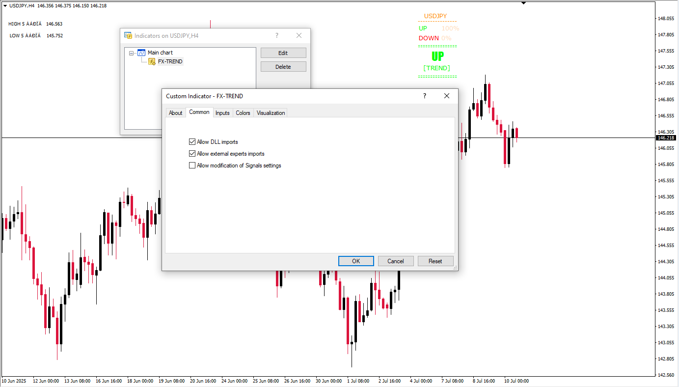 🔻 اطمینان حاصل کنید که قیمت در زیر نوار اندیکاتور قرار دارد.