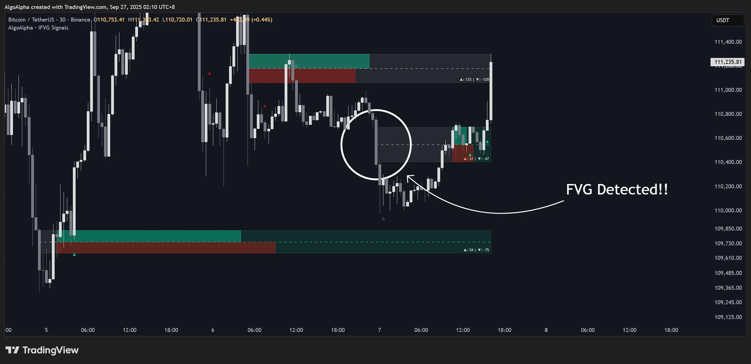 - نمایشگرهای بصری (△/▽ برای FVG و ▲/▼ برای IFVG) وقتی قیمت بدون کاهش وارد منطقه شود.