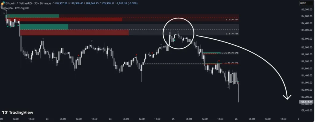 - IFVG نزولی بالای قیمت ممکن است بهعنوان عرضه عمل کند.
