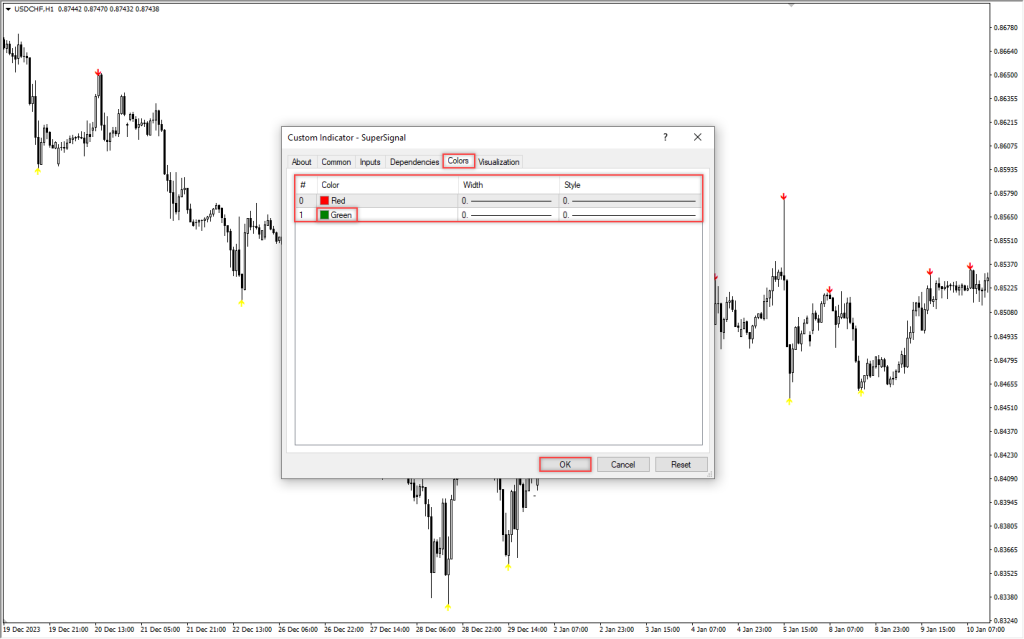 تنظیمات اندیکاتور Super Signal برای متاتریدر 4