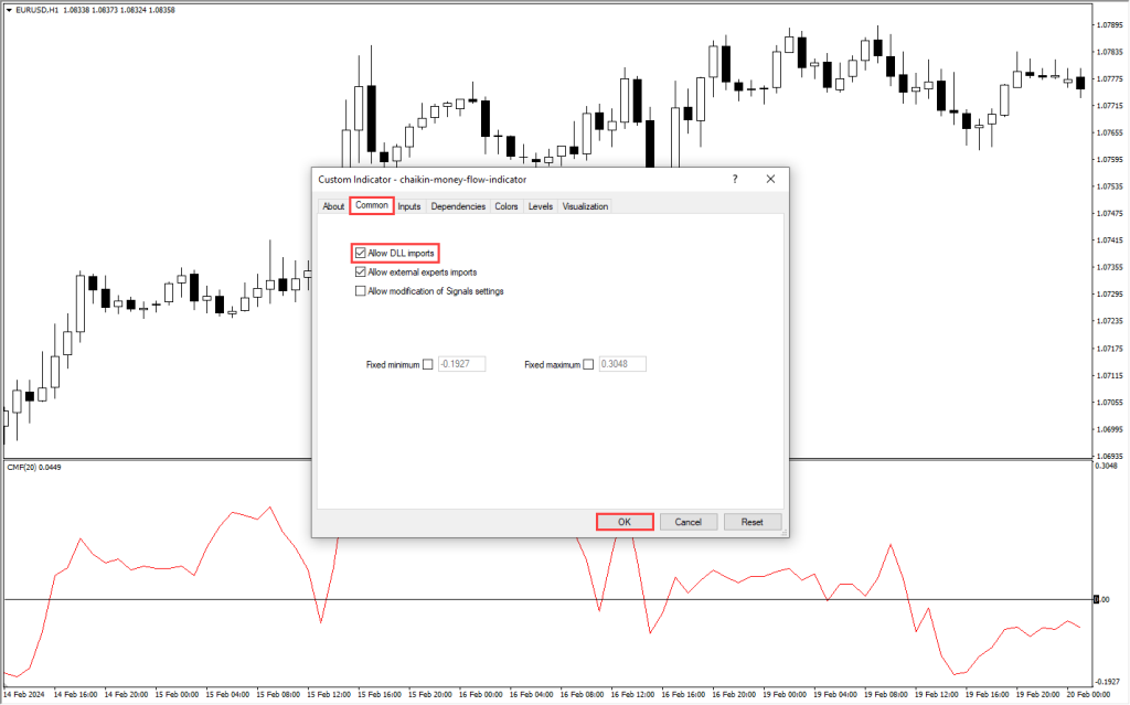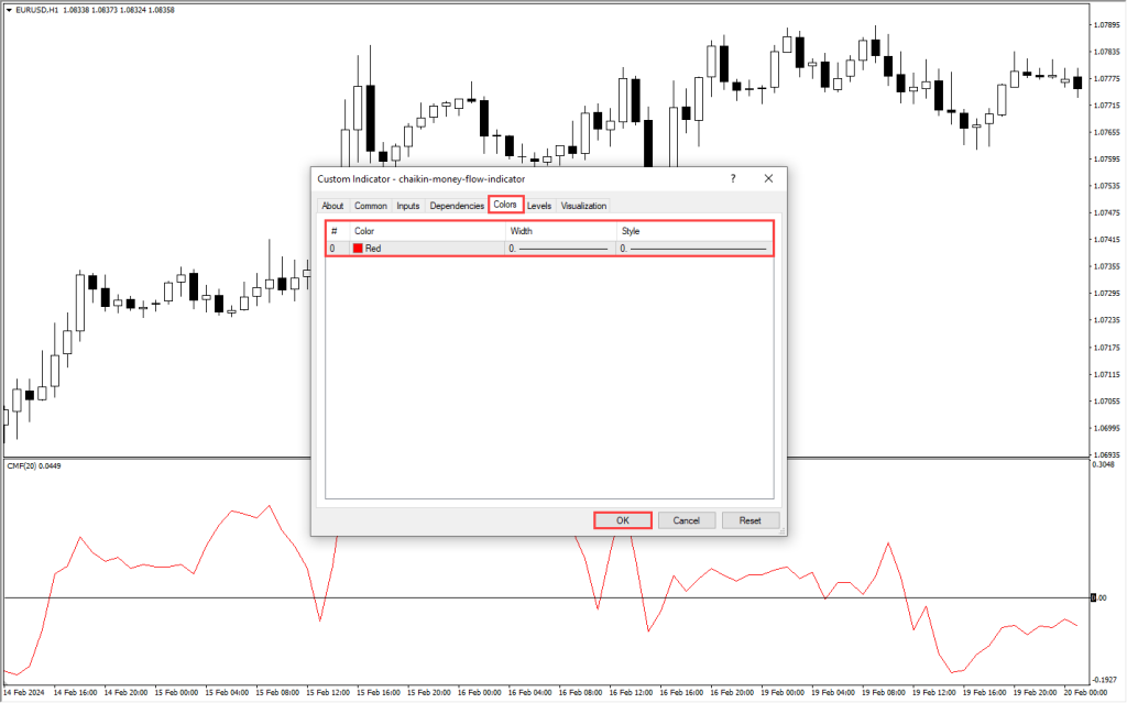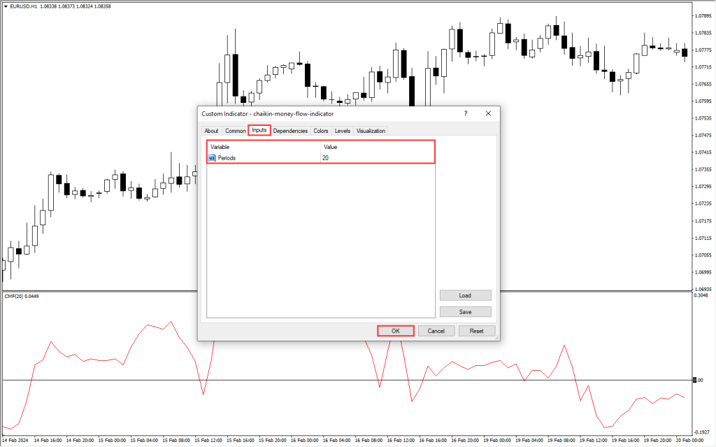 تنظیمات اندیکاتور Chaikin Money Flow MT4 برای متاتریدر 4