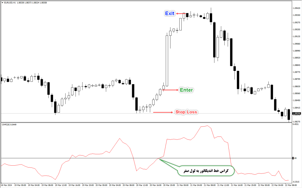 نحوه ی سیگنال گیری از اندیکاتور CMF MT4 به شرح ذیل می باشد.
