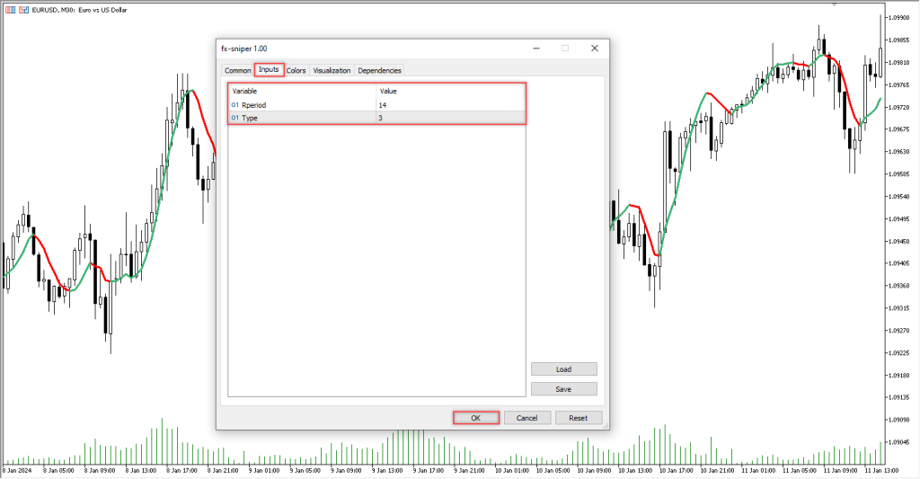 تنظیمات اندیکاتور FX Sniper برای متاتریدر 5