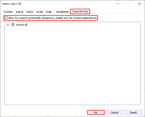 پس از کلیک بر روی اندیکاتور مورد نظر باید گزینه ” Allow DLL “ را فعال کنید و سپس بر روی گزینه ” OK “ کلیک نمایید تا اندیکاتور به درستی بر روی نمودار قیمتی نصب گردد.