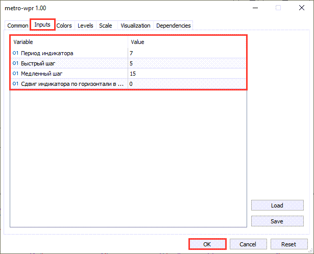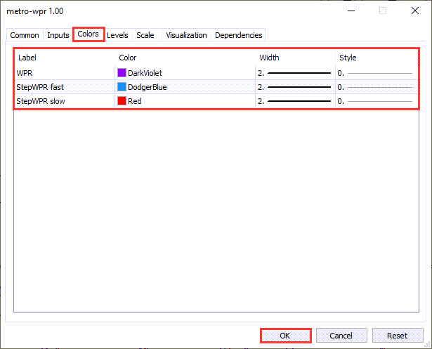 تنظیمات اندیکاتور Metro WPR MT5 برای متاتریدر 5