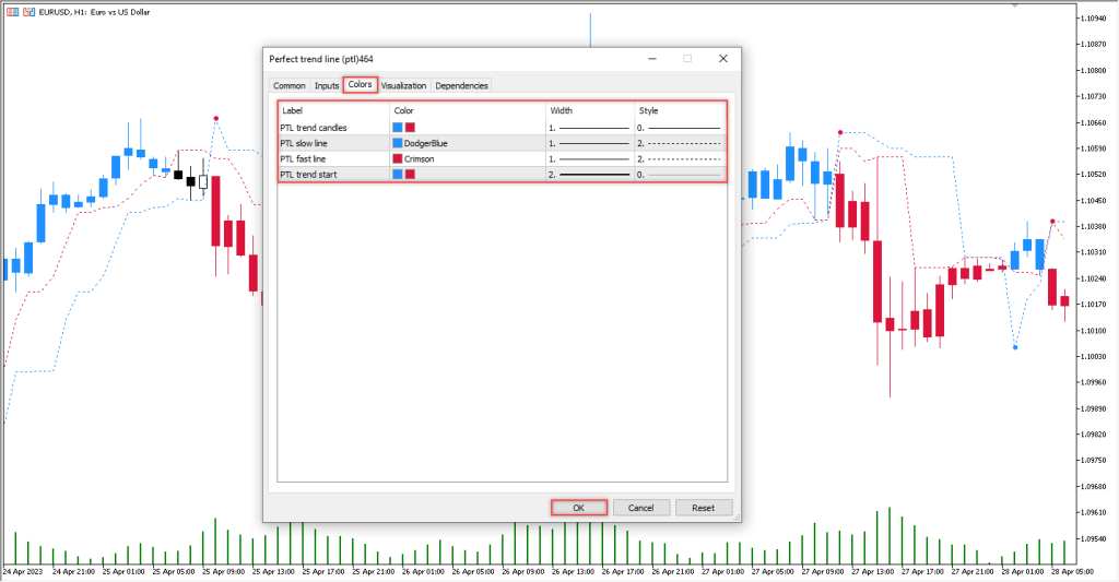 تنظیمات اندیکاتور Perfect Trendline برای متاتریدر 5