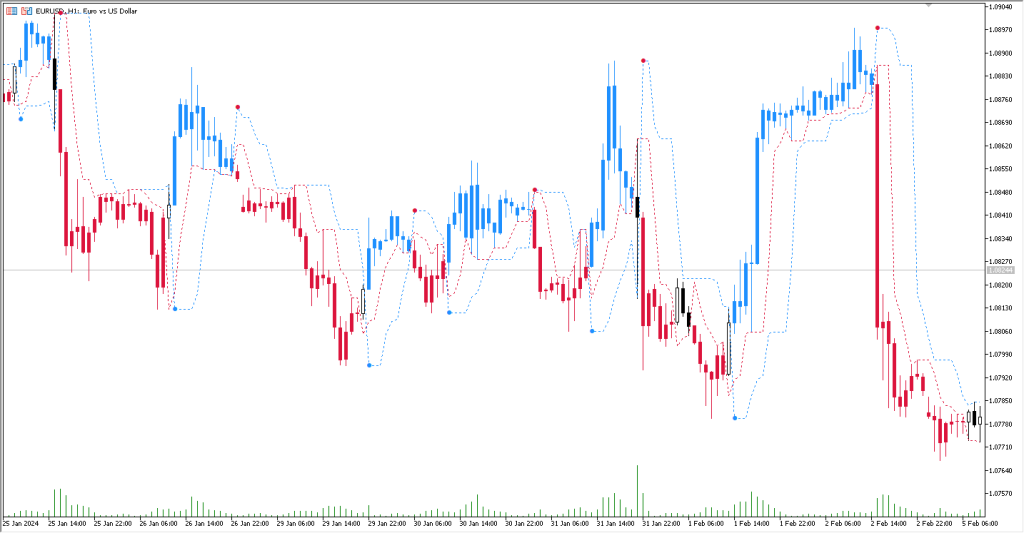 1- Perfect Trendline از دو خط نقطه چین قرمز و آبی و تشکیل شده است.