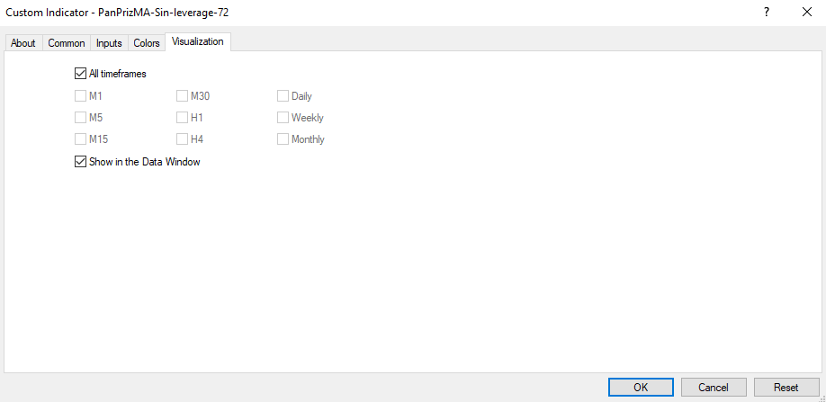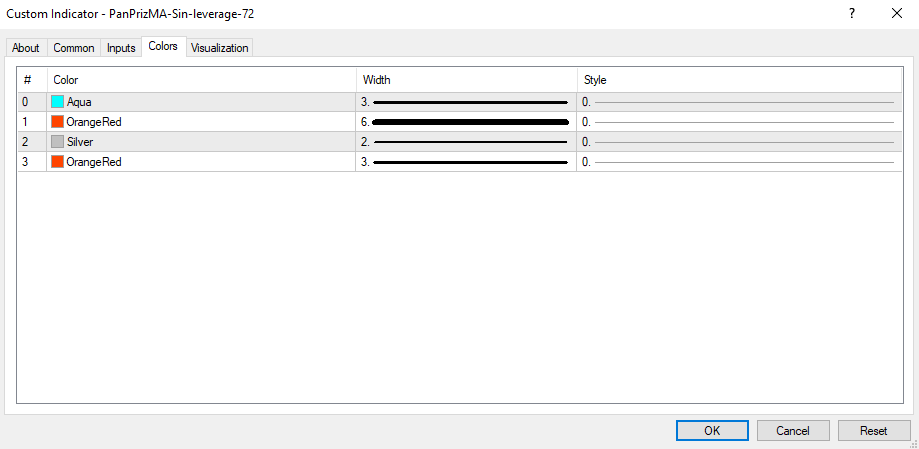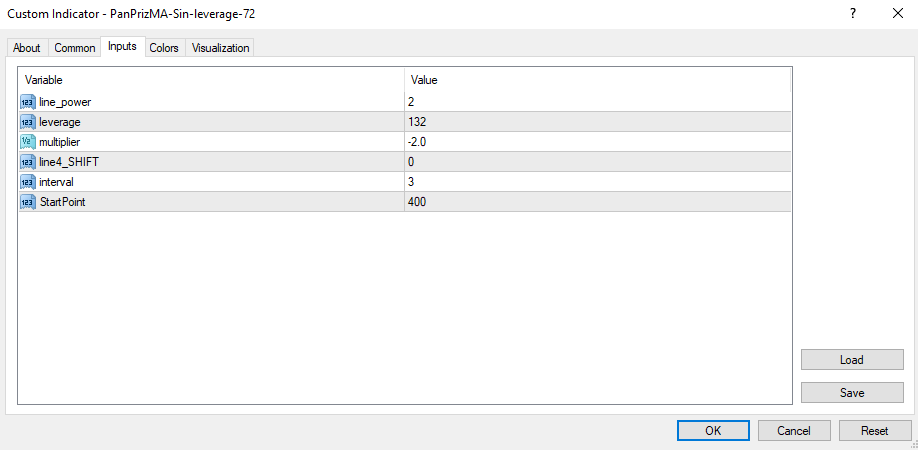 تنظیمات اندیکاتور PanPrizMA Sin leverage 72:
