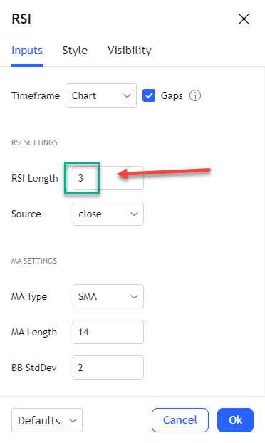 تنظیمات اندیکاتور Relative Strength Index در تریدینگ ویو