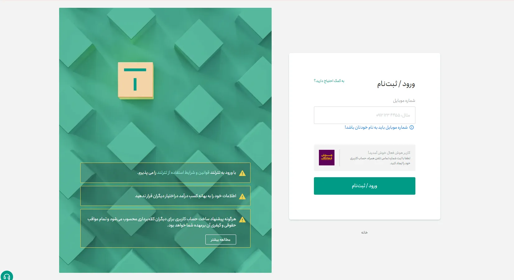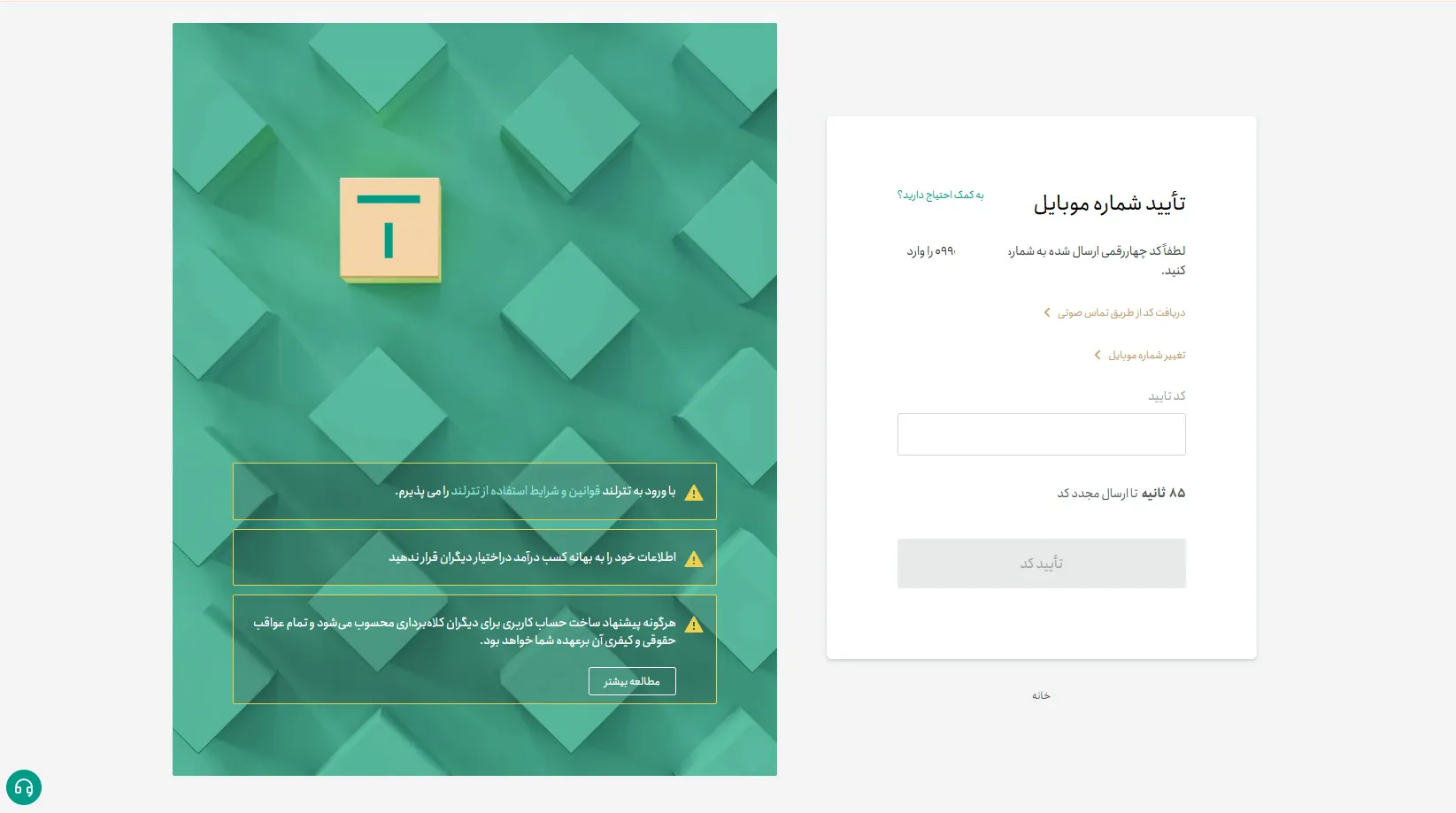 وارد کردن شماره موبایل: شماره همراه خود را وارد و کد پیامکی ارسال شده را تأیید کنید.