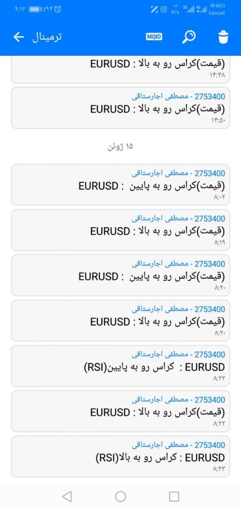 نمونه سیگنال اندیکاتور که به موبایل ارسال می کند