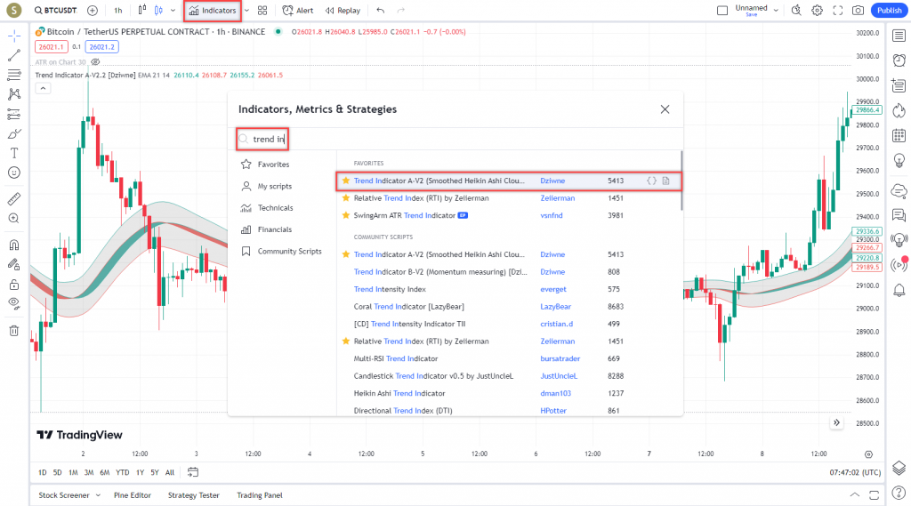 نصب اندیکاتور Trend Indicator A-V2 در تریدینگ ویو