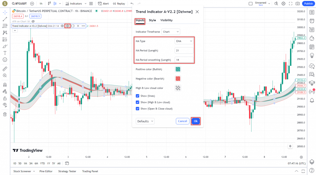 تنظیمات اندیکاتور Trend Indicator A-V2 در تریدینگ ویو
