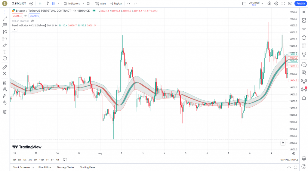 مقدمه ایی بر اندیکاتور Trend Indicator A-V2 برای ارز دیجیتال و فارکس در تایم فریم یک ساعت
