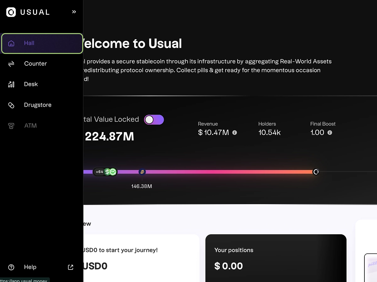Usual یک پلتفرم غیرمتمرکز است که بر تجمیع توکنهای اوراق قرضه خزانهداری ایالات متحده از نهادهای مختلف تمرکز دارد تا فرصتهای سرمایهگذاری بیشتری را برای کاربران فراهم کند. این کار از طریق استیبل کوینهای USD0 و USD0++ انجام میشود. در پیشبینی راهاندازی توکن حاکمیتی Usual، کاربران میتوانند با شرکت در کمپین Pills با پلتفرم آشنا شوند.
