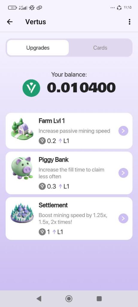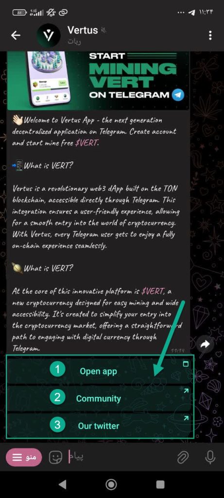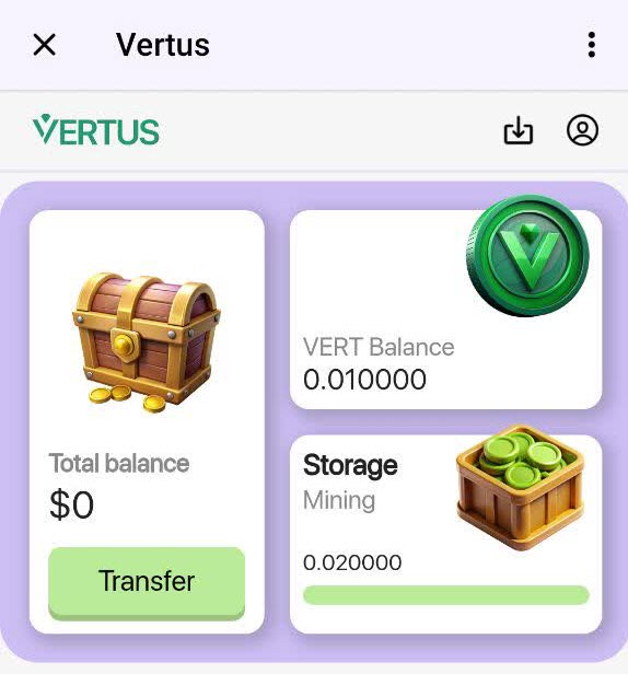 ورتوس Vertus ایردراپ معروف تلگرامی است که در اواخر سال 2024 فعالیت خود را به طور رسمی آغاز کرد ، این ربات یک بازی بلاک چینی با ارز TON است مانند بازی نات کوین با این تفاوت که در این بازی نیازی به تب کردن به روی لوگوی بازی نداریم بلکه با اجرا سازی بازی در یک بازه زمانی که برنامه یه شما می گوید می توانید به صورت ساعتی و رایگان کوین بدست آورید که در ادامه بیشتر توضیح خواهم داد علاوه بر این مزیت در ربات vertus شما می توانید این بازی را در دسکتاپ اجرا کنید ، شما می توانید در این بازی یک کیف پول داخلی داشته باشید که امکان ذخیره توکن های استخراج شده ، انتقال و واریز توکن vertus برای شما فعال ساخت.