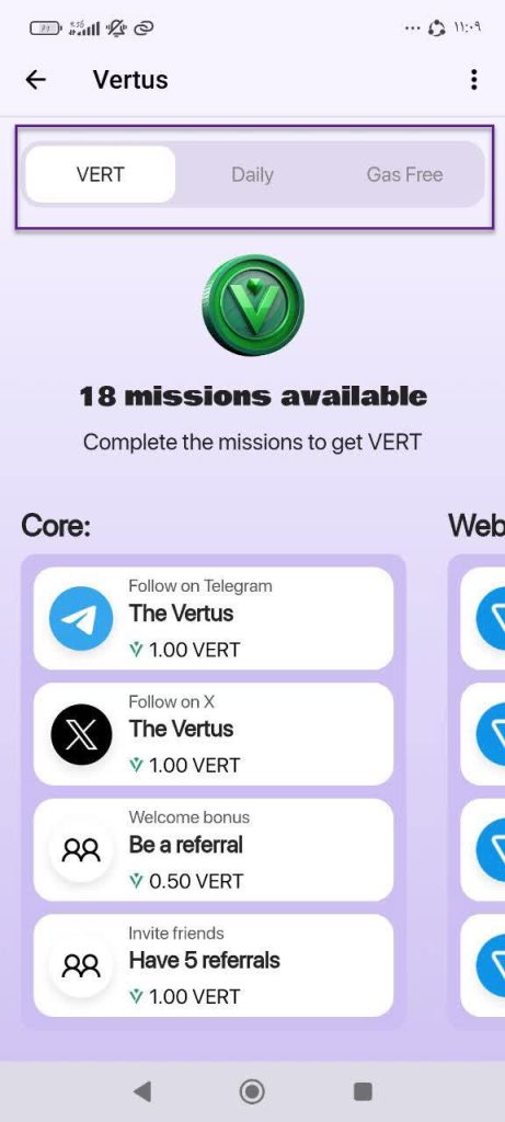 VERT : دارای 18 ماموریت برای شماست که به ازای هر ماموریت مقداری پاداش به شما می دهد.