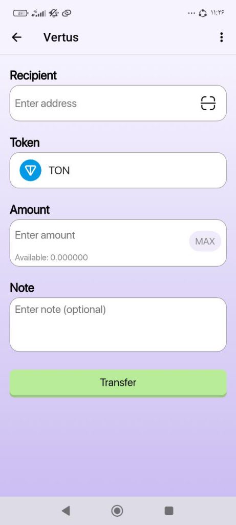 در بخش Total balance : با کلیک بر روی گزینه Transfer وارد صفحه جدیدی می شوید که در این صفحه توکن ها را به ton تبدیل می کنید.