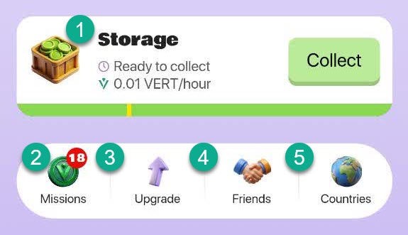 شما VERT را می بینید که مبلغی را که بعدا دریافت می کنید را می توانید به TON تبدیل و سپس دریافت کنید.که فعلا این بخش غیر فعال هست و وقتی توکن این بازی لیست شود فعال می شود ، می توان گفت این بخش مربوط به هدف نهایی این بازی می باشد که تبدیل شدن به یک کیف پول در بستر تلگرام است .